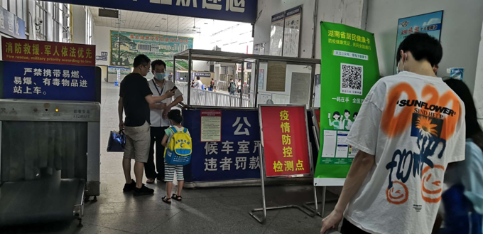 是七月上旬,位于紅旗廣場的湘運(yùn)中心汽車站似乎還沒有恢復(fù)元?dú),即使周末,乘客也是寥寥無幾,唯有候車室的大屏幕播放著疫情防控的宣傳。